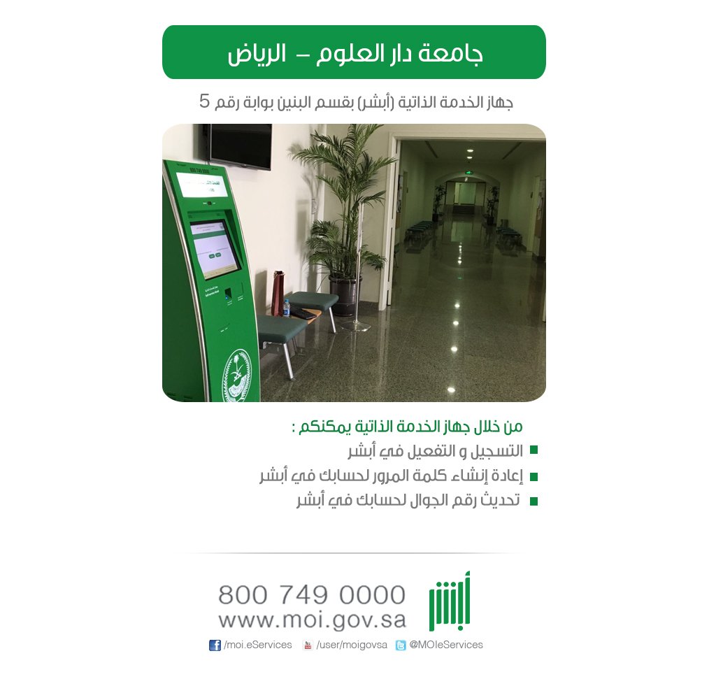 مواقع اجهزة تفعيل خدمة أبشر مكه. لو سمحتم اريد معرفة اين هي مواقع اجهزة تفعيل خدمة أبشر الرياض الاجهزة الذاتية. ويمك ن الجهاز كافة المستخدمين من المواطنين أو المقيمين من تفعيل حساباتهم للاستفادة من الخدمات الإلكترونية ذاتيا ولاسيما خدمة أبشر وذلك دون الحاجة للرجوع إلى الموظف المختص. هنا يمكنك تفعيل حسابك من خلال أجهزة الخدمة الذاتية بدون الذهاب الى المكاتب. مواقع جهاز ابشر في مدينة جدة.